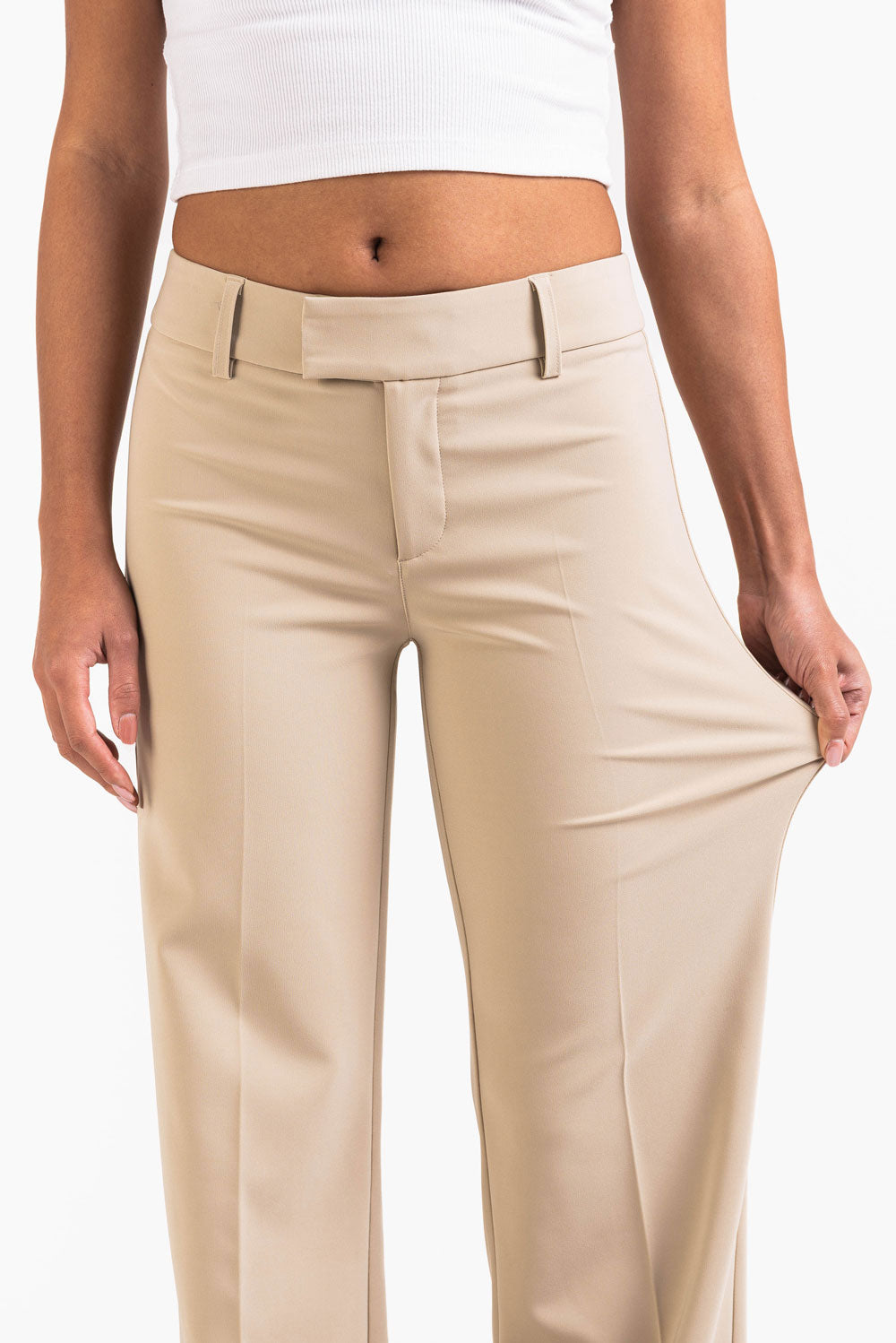 Ava 02Mid Flared Habitbukser - Light Beige