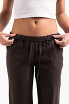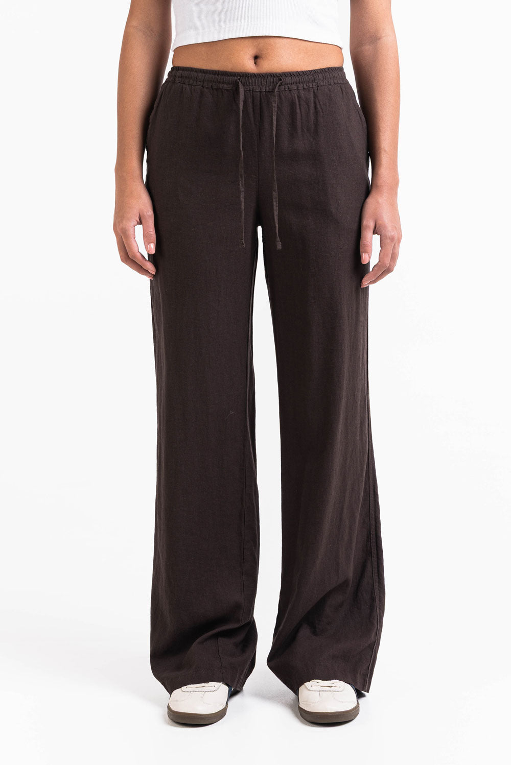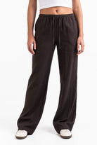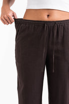 Mila 01Mid Straight Linen Pants - Brown