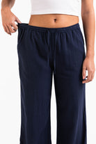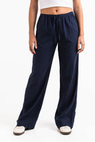 Mila 01Mid Straight Linen Pants - Navy